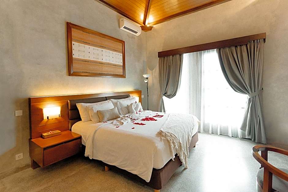 This one-bedroom villa features a well equipped kitchen, a dining area and a living area with plush sofas and a flat-screen satellite TV. Air-conditioned bedroom has a seating area, personal safe and an private bathroom with bathrobes, towels and free bath amenities. Guests enjoy: - Return airport transfer - One-time Balinesse massage for 2 people - One-time romantic dinner - Honeymoon setup on the bed and bathtub - Small honeymoon cake - Daily replenished mini-bar - Free scheduled drop-off to Seminyak area